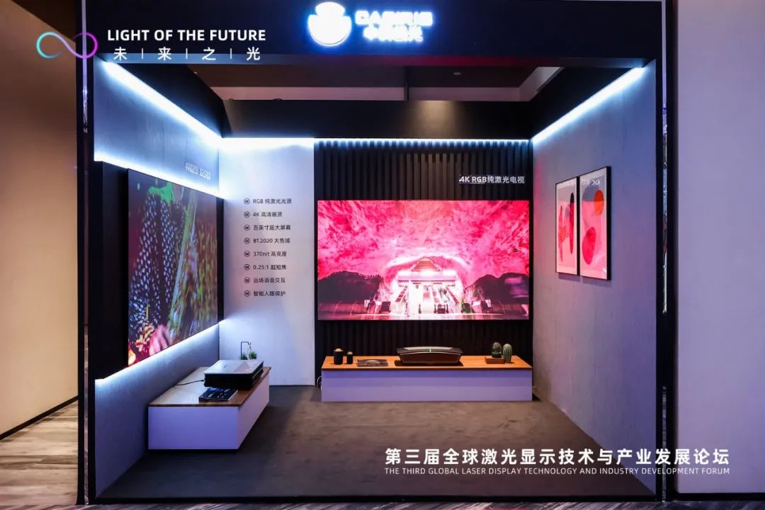 行业步入快车道,激光电视的发展顺势腾飞,中科极光积极融合科技,创新产品技术。在本届论坛上,首次携重磅新品致敬生命系列 RGB-4K 纯激光电视亮相。